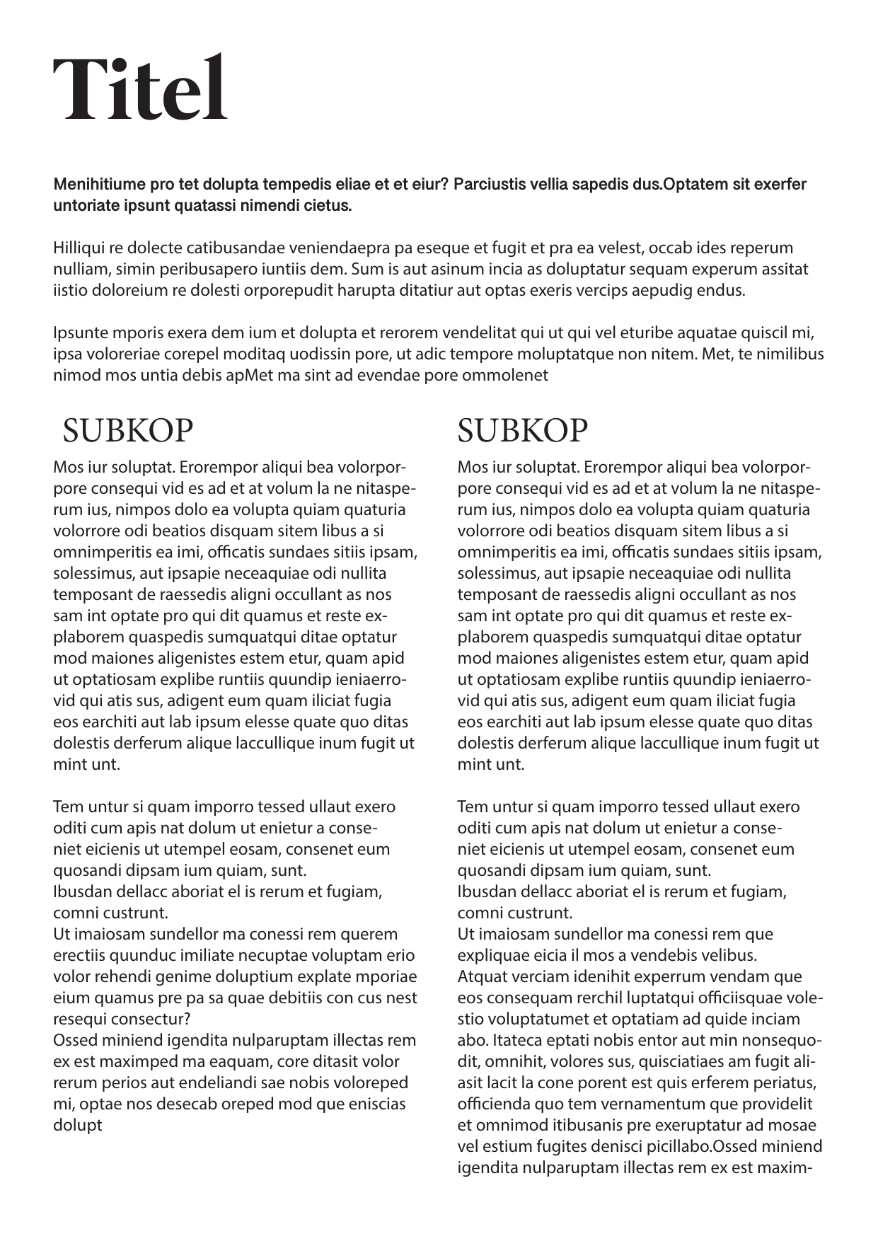 Deze schets focust op een grote titel met daaronder eenintroductietekst. De opbouw is rustig en overzichtelijk, waardoor de lezer direct wordt meegenomen in de inhoud.