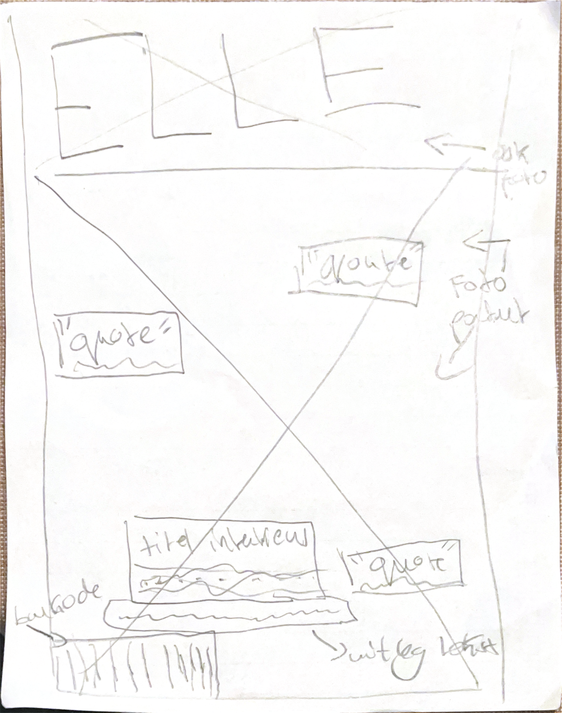 In deze schets ligt de nadruk op beeld, met ruimte voor een grote afbeelding en ondersteunende tekst. Deze opzet is geschikt om aandacht te trekken en visueel te openen.